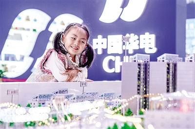 6月22日,小朋友在第9届南博会上参观综合发电展示模型。 (新华社发 彭奕凯摄)