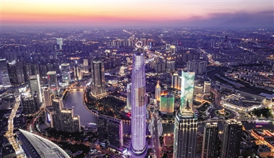 这是6月21日拍摄的天津环球金融中心(中)(无人机照片)。 6月22日,位于天津环球金融中心79层的“天津之心”津塔观光厅正式对外开放,市民游客可在310米的高度,360度全景欣赏天津的城市魅力。位于天津中心城区海河畔的天津环球金融中心(即津塔写字楼)总高度336.9米,2011年投入使用,是天津地标性的超高层建筑之一。 (新华社记者 孙凡越 摄)