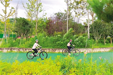 清晨,骑行爱好者戚文林正带着孩子沿漫游道骑行,空气中飘着青草和树叶的清新味道,路两旁的树木郁郁葱葱。他笑着说:“以前骑车要和机动车抢道,现在有了专用绿道,既安全又舒心。”像他这样的骑行爱好者不在少数,漫游道上随处可见三五成群的骑行者,构成了一道流动的风景线。