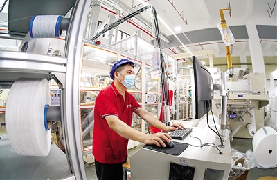 23日,在武夷新区创业园三期福建金佰康生活用品有限公司生产车间里,工人正在生产线上忙碌。该公司投资1.5亿元,建设4条生产线,目前全部投产,主要生产婴儿纸尿裤和婴儿一体裤,年产值约2亿元。 (张行健 摄)
