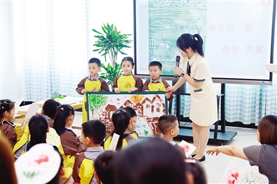 松溪县南门幼儿园的孩子们展示版面作品 (资料图片)