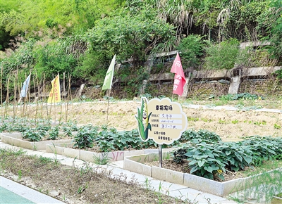 走近一看,可以看到被围起的菜地被分割成大小相等的方格,种着不少蔬菜,长势喜人。每块菜地前都立着牌子,写着种植者。松溪伍心生态康养社区负责人江益华告诉记者:“这些都是我们康养社区的老人种的,考虑有些老人身体好,之前生活在农村,我们就想着买些蔬菜种子给他们种着玩。前段时间,他们种的四季豆丰收了,我们食堂就给他们炒成菜,让他们在辛勤的劳作中找到了生活的乐趣与价值。”