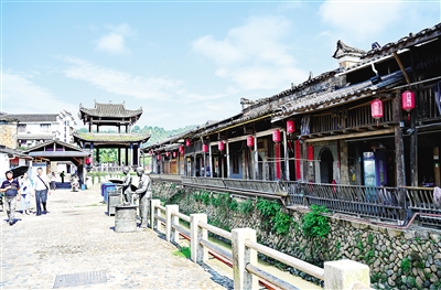 6月25日拍摄的位于武夷山市武夷街道的“中国历史文化名村”下梅村古街一角。