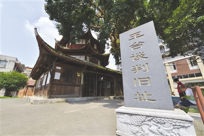 1933年9月23日,彭德怀司令员、滕代远政委、袁国平主任在王台八角楼与十九路军代表陈公培举行“王台谈判”。