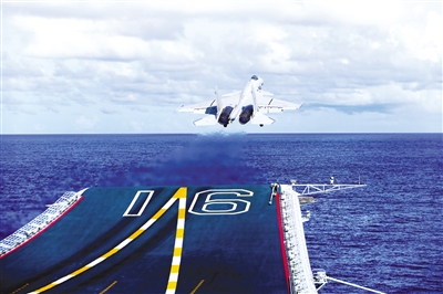 舰载战斗机滑越起飞 (新华社发 王园林 摄)