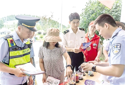 近日,南平高速执法支队一大队与南平司法强制隔离戒毒所、南平高速延平管理中心、南平高速交警、南平海关等部门联合开展禁毒宣传活动。图为宣传人员为旅客介绍禁毒知识,现场答疑解惑。 (苏晋垚 宋琳玲 陈进忠 摄)