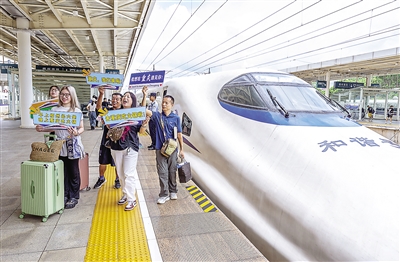 当日,全国铁路实行新的列车运行图,同时为期62天的2025年全国铁路暑期运输也拉开帷幕。7月1日至8月31日,全国铁路预计发送旅客9.53亿人次,同比增长5.8%,日均发送旅客1537万人次。 (新华社发 何华文 摄)