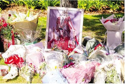 若塔车祸去世,令世界足坛笼罩在哀伤的氛围中。 图为7月3日在利物浦安菲尔德球场外拍摄的球迷为悼念若塔摆放的纪念物。 (新华社发)