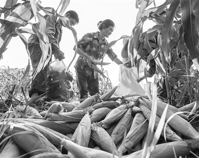 本报讯(记者 陈颖 徐园园/文 张行健/摄)8日上午,记者在建阳区徐市镇大阐村的鲜食玉米试验田看到,一排排整齐的玉米秆映入眼帘,翠绿的叶子在微风中摇曳,农户们穿梭在田间采收,一个个编织袋很快便装得满满当当。