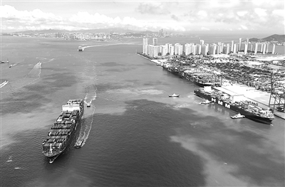 7月8日,在青岛胶州湾航道,数艘集装箱货轮缓缓进入山东港口青岛港(无人机照片)。 记者从2025年中国航海日主论坛获悉,我国拥有全球规模最大的海运船队,建成了全球最大的世界级港口群,国际海运量占全球近三分之一,海洋经济总量持续攀升,为全球经贸持续稳定发展注入了强劲动力。 (新华社发 张进刚 摄)