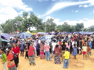 七月二十九日,柬埔寨边境的撤离人员在奥多棉吉省的一处安置场所领取救济物资。 柬埔寨首相洪玛奈二十九日早表示,二十八日午夜停火生效后,柬埔寨和泰国边境局势有所缓和。 (新华社发 万坡 摄)