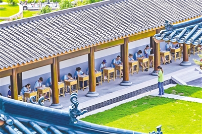 紧接着,举行了本届赛事的首场“过桥积分赛”——“博古通今”笔试。该轮赛事采用笔试答题,选手们在别具传统文化特色的册页试卷上作答,包括听力、选择、写作三种题型,涵盖传统文化、历史地理、经济科技、当代中国等各方面内容。