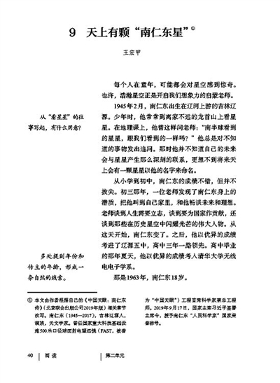2025年的新学期,当八年级的孩子们翻开语文课本,读到《天上有颗“南仁东星”》时,他们或许会问:“我们为什么要学这篇课文?”