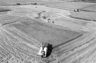 日前,建阳区3.3万亩再生稻头季大面积开镰收割,一批先进的收割机投入到生产作业中,大大提高了收割效率。据悉,建阳再生稻头季普遍丰收,水吉、徐市等地高产示范片测产达750公斤以上。图为建阳水吉镇郑墩村再生稻收割现场。 (陈琦辉 摄)