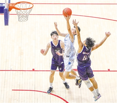 12日,2025年福建省青少年篮球冠军赛暨中学生篮球联赛(甲组)在南平市体育中心拉开帷幕,来自福州、厦门、泉州、漳州等地的20支男子组队伍、11支女子组队伍,近500名运动员参加比赛。比赛由福建省体育局、福建省教育厅主办。图为13日比赛现场。 (张行健 摄)