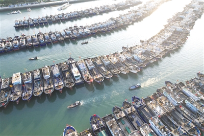 8月12日,渔船在福建厦门高崎闽台中心渔港躲避台风(无人机照片)。 国家防汛抗旱总指挥部13日将针对广东、福建的防汛防台风应急响应提升至三级。据气象部门预报,台风“杨柳”将于13日夜间至14日凌晨在福建厦门到广东汕头一带沿海再次登陆,以后继续向西偏北方向移动。受其影响,13日至14日,广东、福建、江西、湖南等地的部分地区有大到暴雨,其中,广东东部、福建东南部等地局地特大暴雨。 (新华社发 曾德猛 摄)