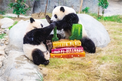 首对“港产”龙凤胎大熊猫“加加”“得得”迎来周岁生日