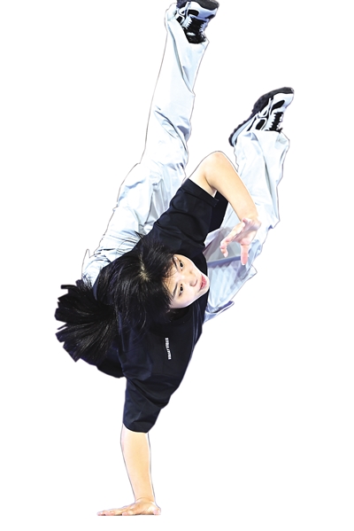 17日,中国选手郭朴、刘清漪包揽女子项目金、银牌,亓祥宇实现突破,收获男子项目金牌,三人共同创造了中国霹雳舞队参加世运会的最好成绩。 图为8月17日,中国选手刘清漪在比赛中。 (新华社记者 李嘉南 摄)