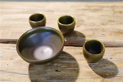 石可为砚,亦可为釉。砚石细料做釉水,在之前电窑试烧的结果中,试制的茶洋盏呈现出意想不到的釉面变化。本次在柴烧高温的作用下,有些器物的黑釉中泛起了细碎银光,釉面出现了如青铜文物般的颜色。在非遗发展进入“跨界活化”时代的当下,这样的区县内非遗联动,给非遗发展提供了更多可能性,也使得加工剩余的材料意外地焕发生命力。