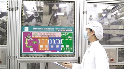 建阳医卫产业园依托闽瑞、维盛、昱升等头部企业优势,吸引热风无纺布、纸尿裤等下游企业入驻,形成从基础材料到终端产品的医卫全产业链集群,落地的16家企业20个项目释放出强劲增长动能。上半年,医卫产业规上企业实现产值7.9亿元,同比增长43.0%。图为18日,在园区内的福建华绿卫生用品有限公司生产车间,工作人员在检查生产情况。 (江洁 张高鹭 摄)