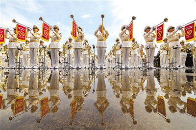 中国人民解放军联合军乐团在进行训练(8月12日摄)。 纪念中国人民抗日战争暨世界反法西斯战争胜利80周年大会举办在即,记者日前在阅兵集训点采访了解到,阅兵训练有条不紊推进,各项准备工作进展顺利。 (新华社记者 殷刚 摄)