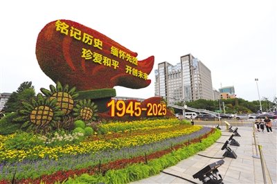 据北京市园林绿化局介绍,纪念活动期间,在长安街沿线以“铭记历史、缅怀先烈、珍爱和平、开创未来”为主题,从建国门至复兴门布置10组立体花坛,生动展现80年来,伟大的中国人民前仆后继、不屈不挠、顽强奋斗,为实现强国建设、民族复兴伟业而不懈努力的伟大精神。