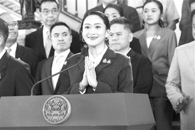 8月29日,在位于泰国曼谷的总理府,佩通坦(中)在宪法法院公布裁定结果后出席记者会。 泰国宪法法院29日裁定,被暂停总理职务的佩通坦在与柬埔寨参议院主席洪森通话事件中的有关做法违反宪法相关规定,即日起解除其总理职务。 宪法法院当天以6比3的多数意见作出上述裁定。裁定认为,佩通坦所为严重违反泰国宪法对于内阁部长道德规范的规定,其总理职务终止自7月1日被宪法法院停职当天生效。 按照宪法规定,当总理职务终止,全体内阁成员也须一并卸任,国会下议院将负责选出泰国新一任总理。代理总理普坦将率内阁其余成员继续履行看守职责,直至新内阁就职。 (新华社发 拉亨 摄)