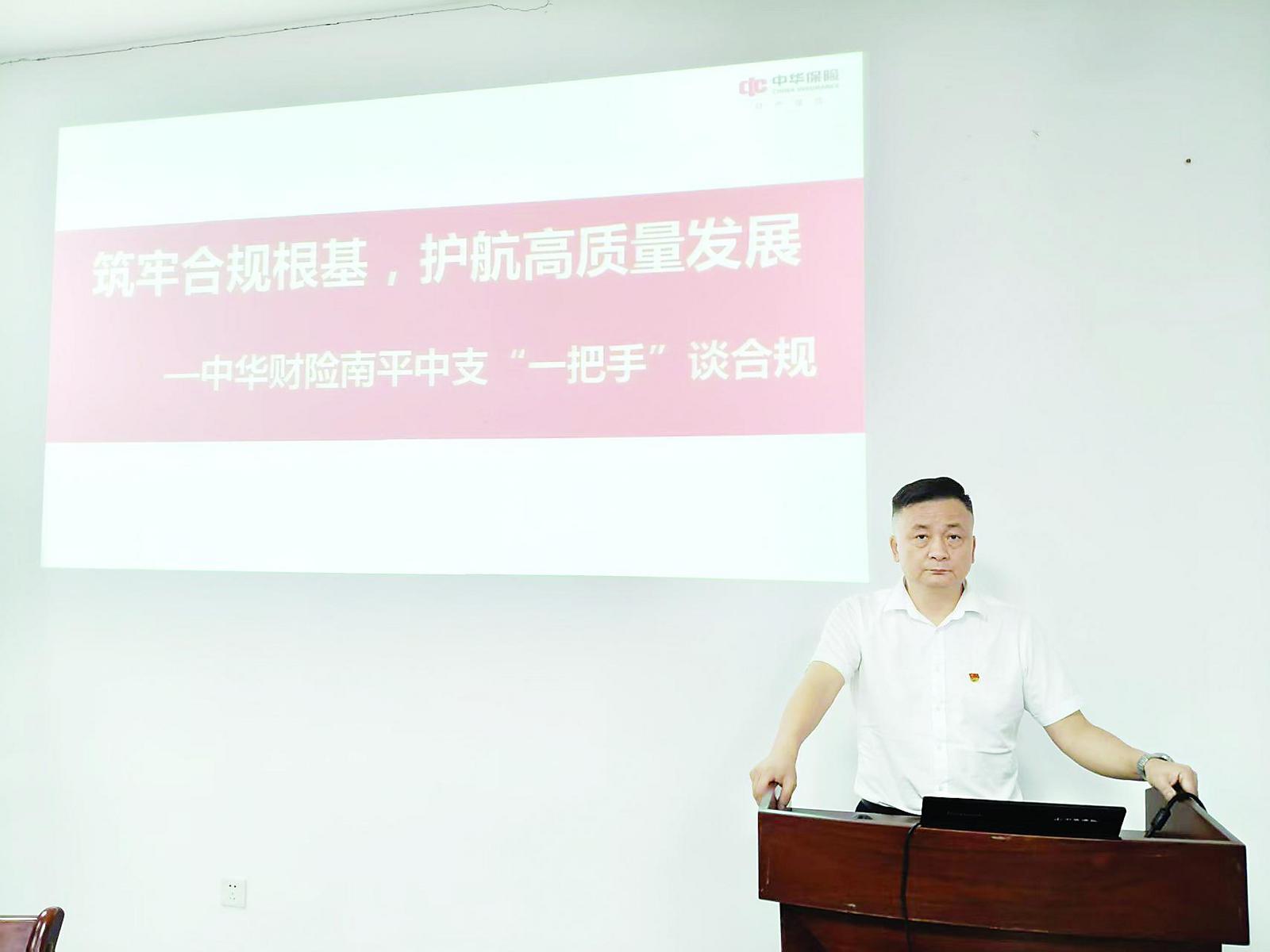 当前,金融监管持续强化,行业竞争日益激烈,合规不仅是保险机构稳健经营的底线,更是实现高质量发展的核心保障。中华财险南平中心支公司始终将合规管理置于公司工作的核心,坚持“合规创造价值、风控保障发展”,推动合规要求全面融入经营各环节,为持续健康发展奠定坚实基础。