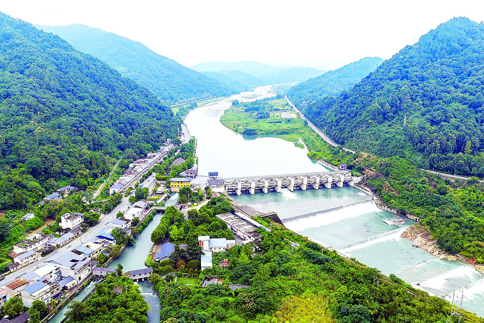 9月10日拍摄的四川彭州湔江堰(无人机照片)。