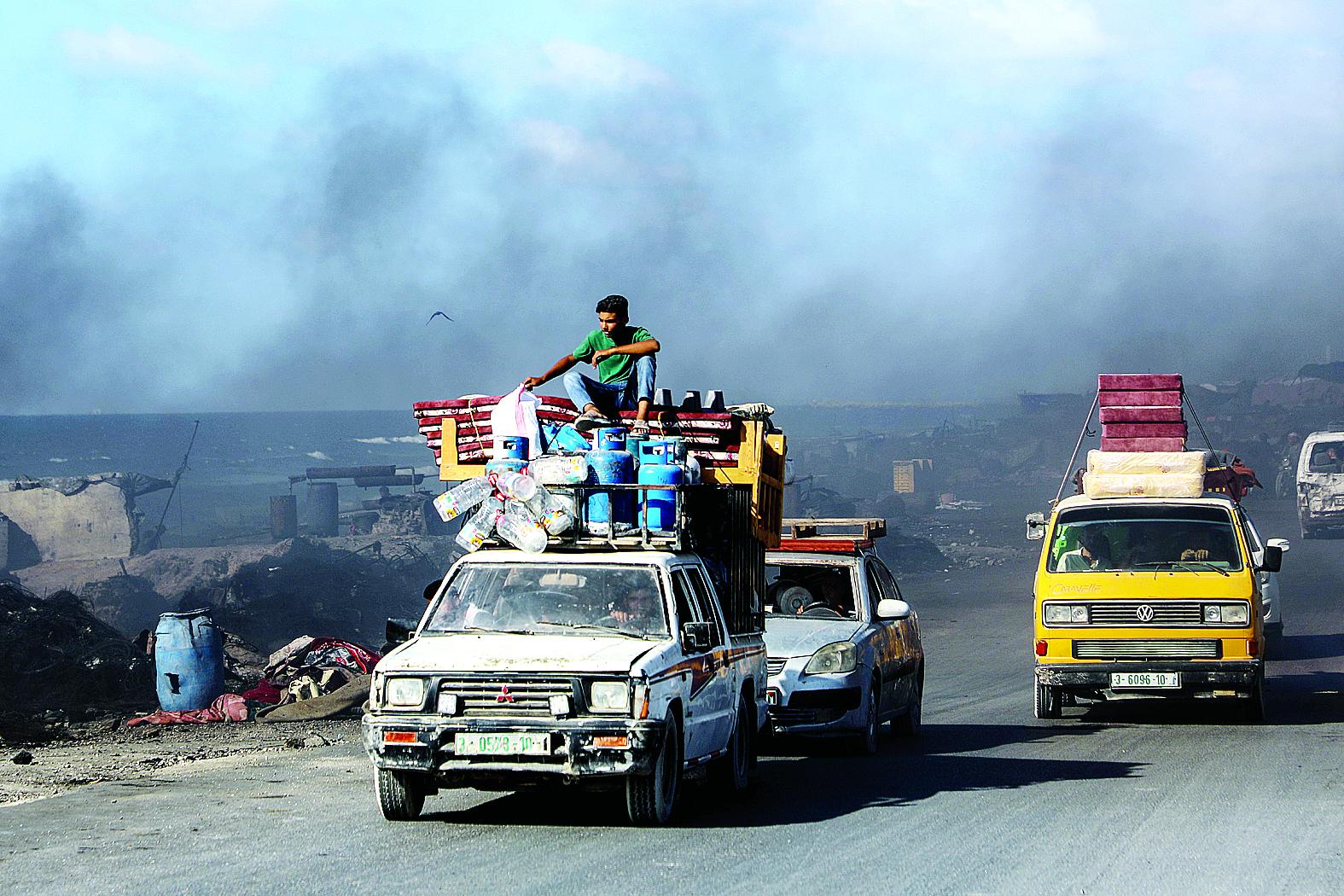 9月9日,巴勒斯坦民众携带物品乘车从加沙地带北部向南部撤离。