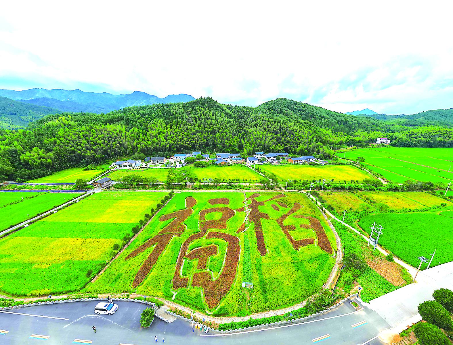 这是9月11日拍摄于浦城县富岭镇殿下村的彩绘稻田。稻田里,紫色、黄色、绿色三种彩色水稻铺植出“福稻”字样,吸引游客打卡。作为规模种粮产区,近年来,殿下村以“稻文化”塑魂、“稻产业”固本、“稻科技”赋能,着力推进乡村全面振兴。