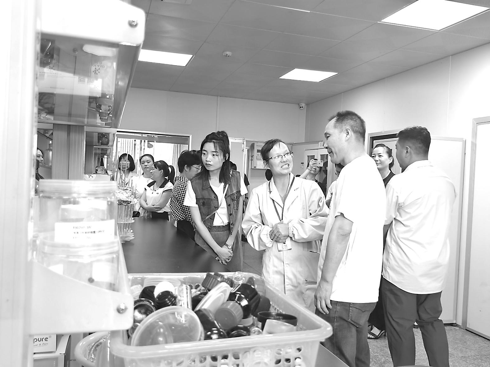 9月5日上午,南平市食品药品检验检测中心举办2025年“质量月”启动仪式暨“食品安全宣传周”“药品安全宣传周”实验室公众开放日活动。图为检测中心工作人员向来宾介绍药品检测流程。