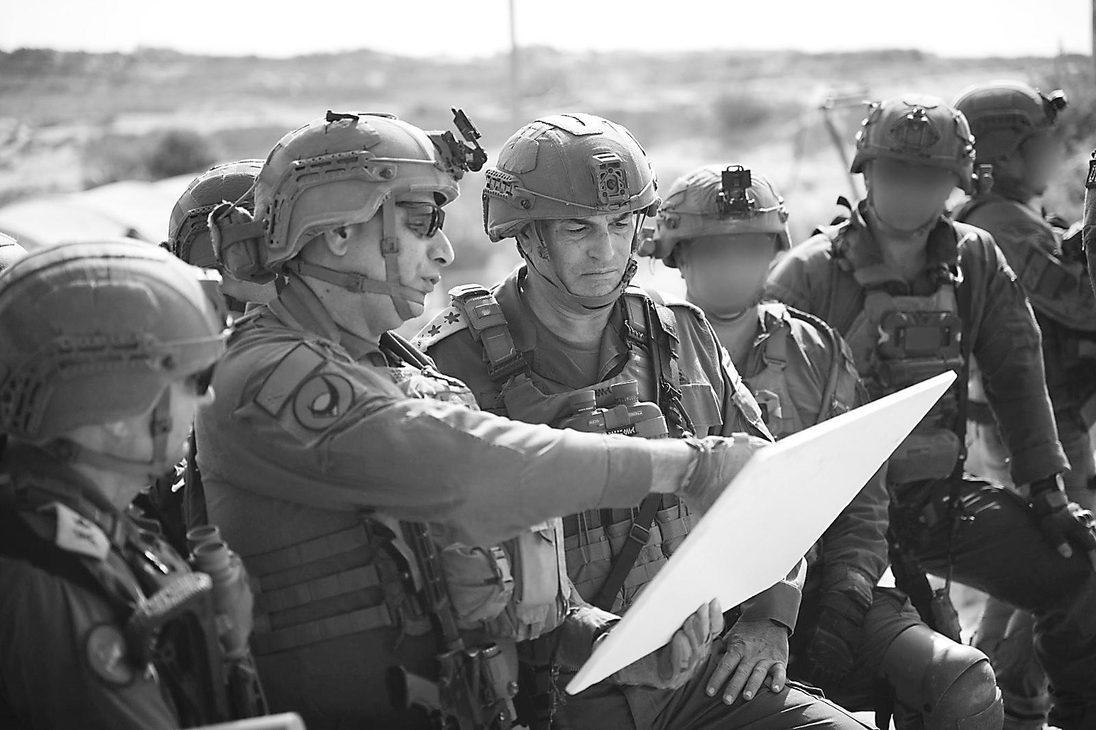 这是9月16日在加沙地带拍摄的以军总参谋长埃亚勒·扎米尔(中)。