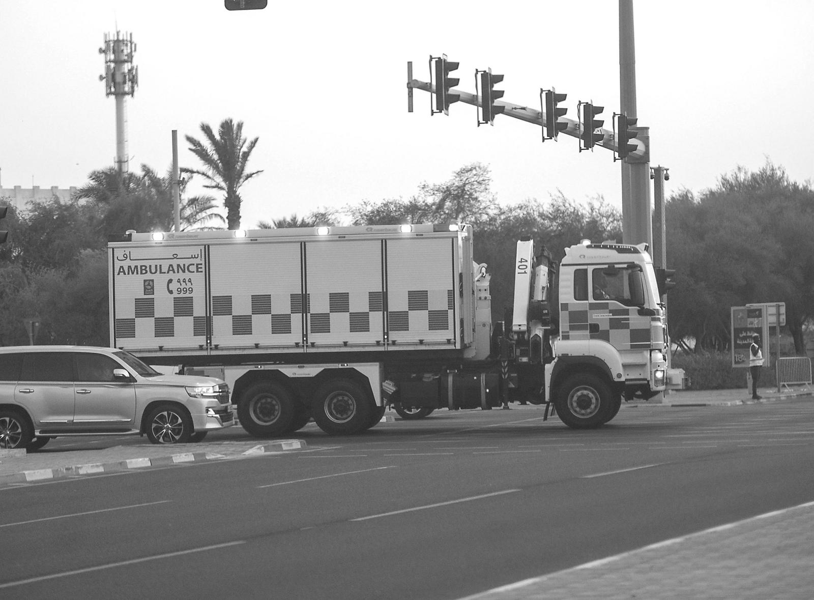 9月9日,在卡塔尔首都多哈,一辆急救车到达事发现场附近。当日,以色列在卡塔尔首都多哈针对巴勒斯坦伊斯兰抵抗运动(哈马斯)政治局多名成员的住所发动“懦弱袭击”。当时,代表团正在开会讨论美国提出的加沙地带停火方案。