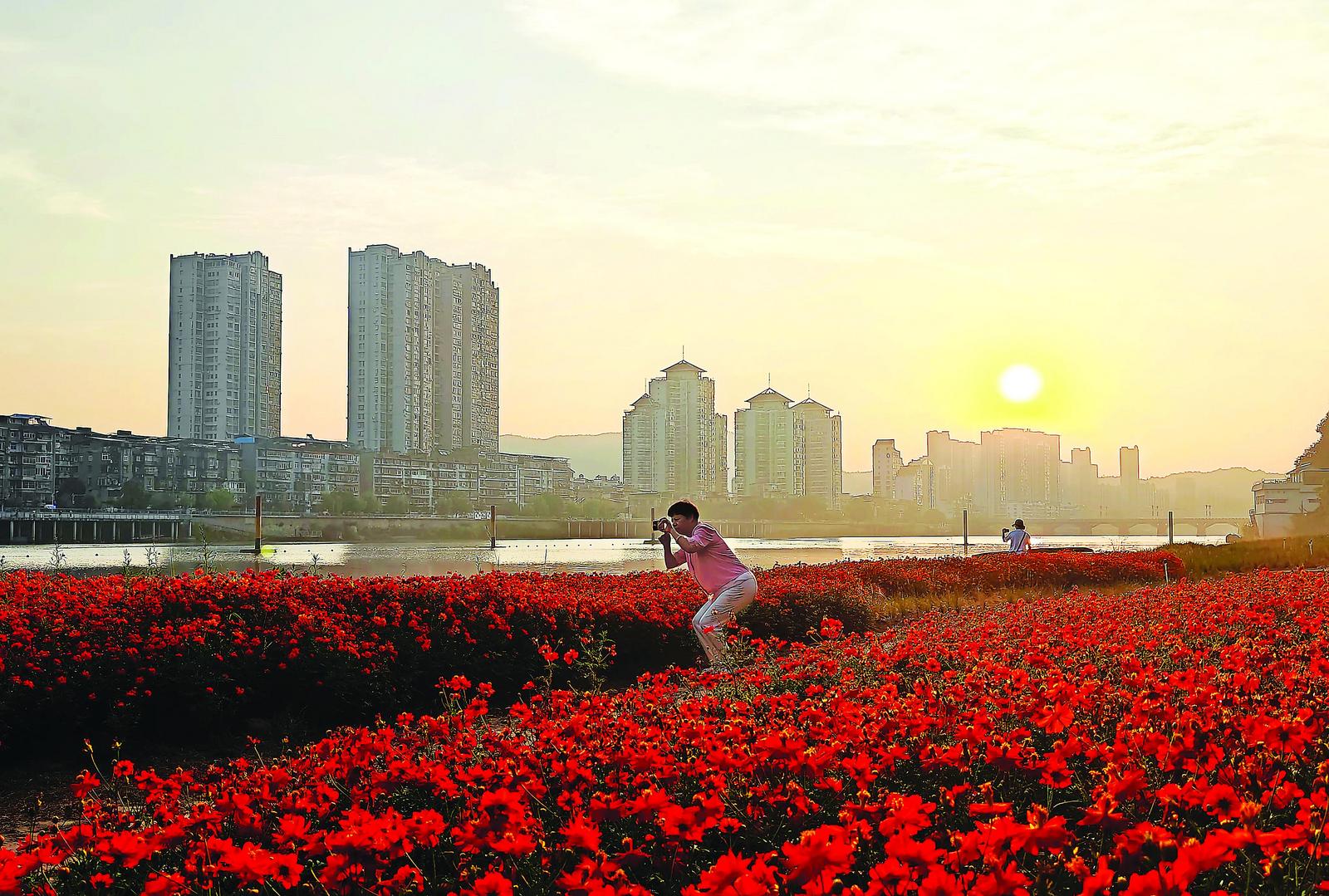 16日早,市民在邵武市熙春公园的花海里打卡。近年来,邵武市持续推进城市绿化工作,通过有效利用城区裸露地块,实施景观提升工程,打造了多处色彩绚丽、设计别致的城市景观,进一步优化人居环境。截至目前,邵武全市累计完成花化彩化面积约16万平方米,在提升城市形象的同时,增强市民幸福感。