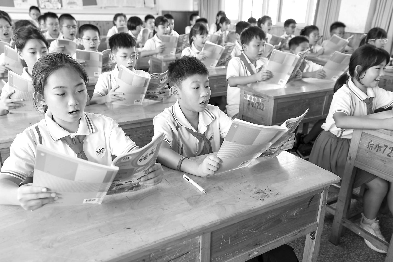 9月15日,武夷山市余庆小学的学生们在朗读课文。近来,该校开展普通话趣味推广课程,通过朗读古诗词“典耀中华”主题读书行动等,让孩子们在轻松愉悦的氛围中说标准普通话,激发学生们对汉语言文化的热爱。 (邱汝泉 摄)