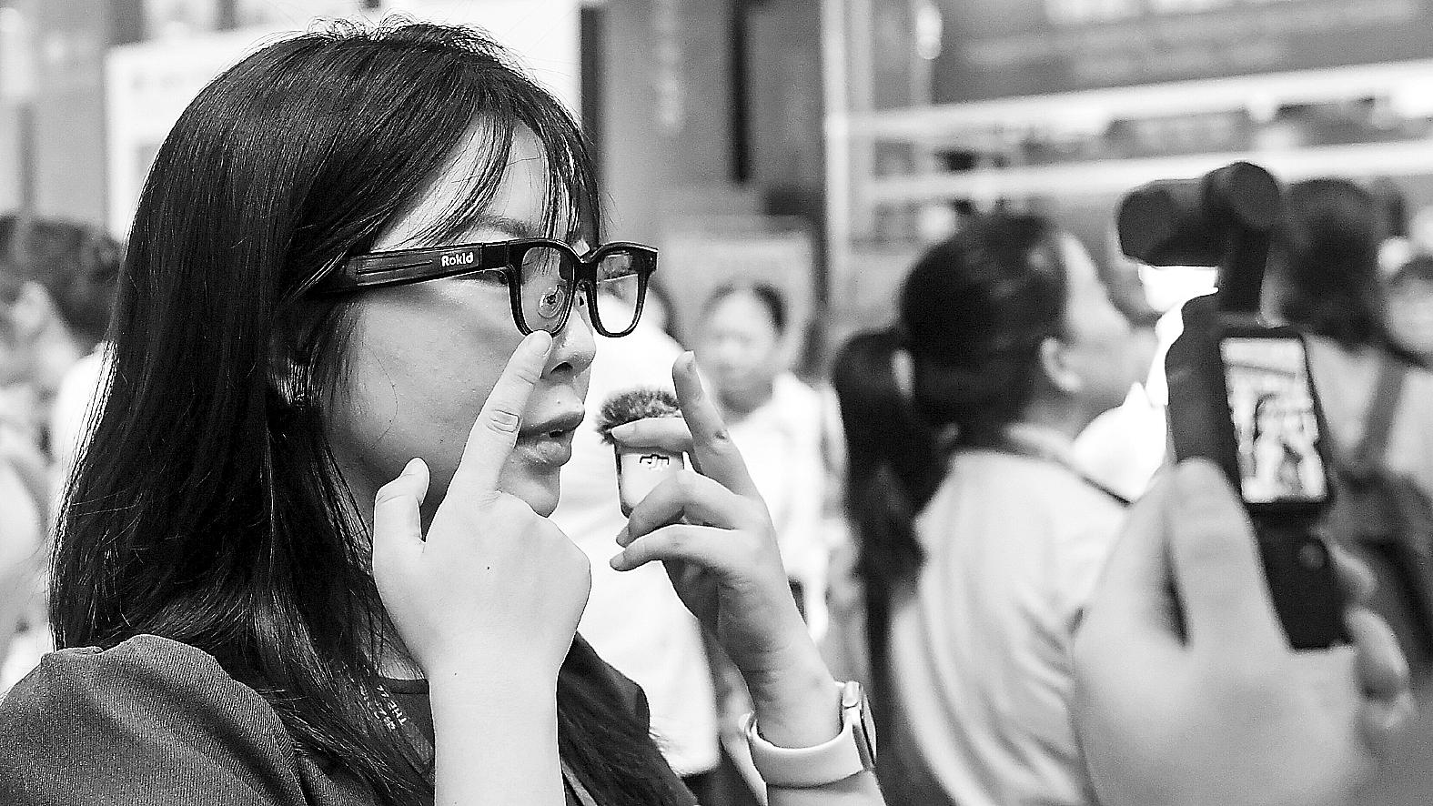 2025年9月17日,在广西南宁国际会展中心举办的第22届中国—东盟博览会上,参观者在体验AI眼镜。
