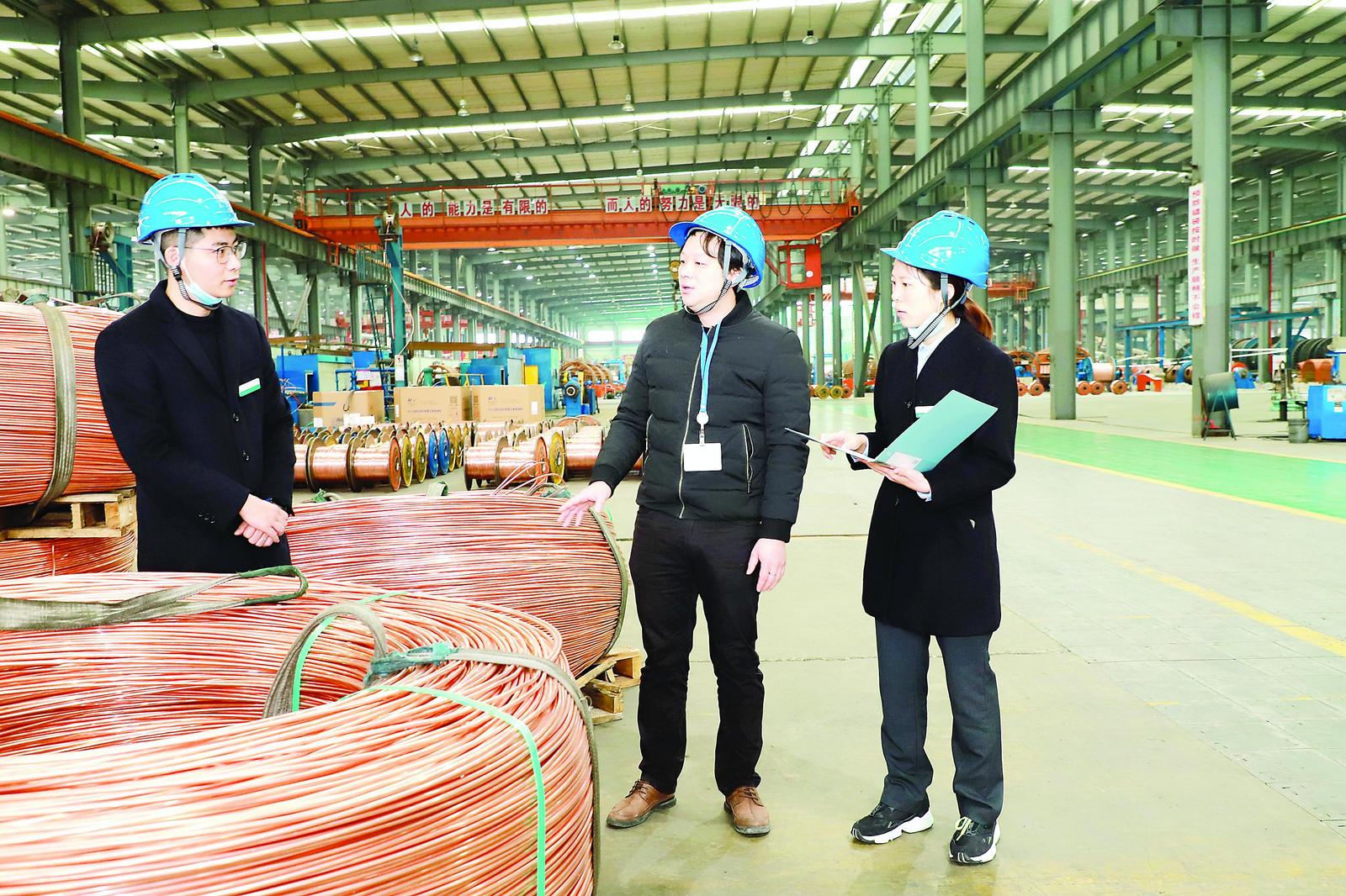 农行延平支行服务团队深入太阳电缆,对接企业金融服务需求。 (资料图片)