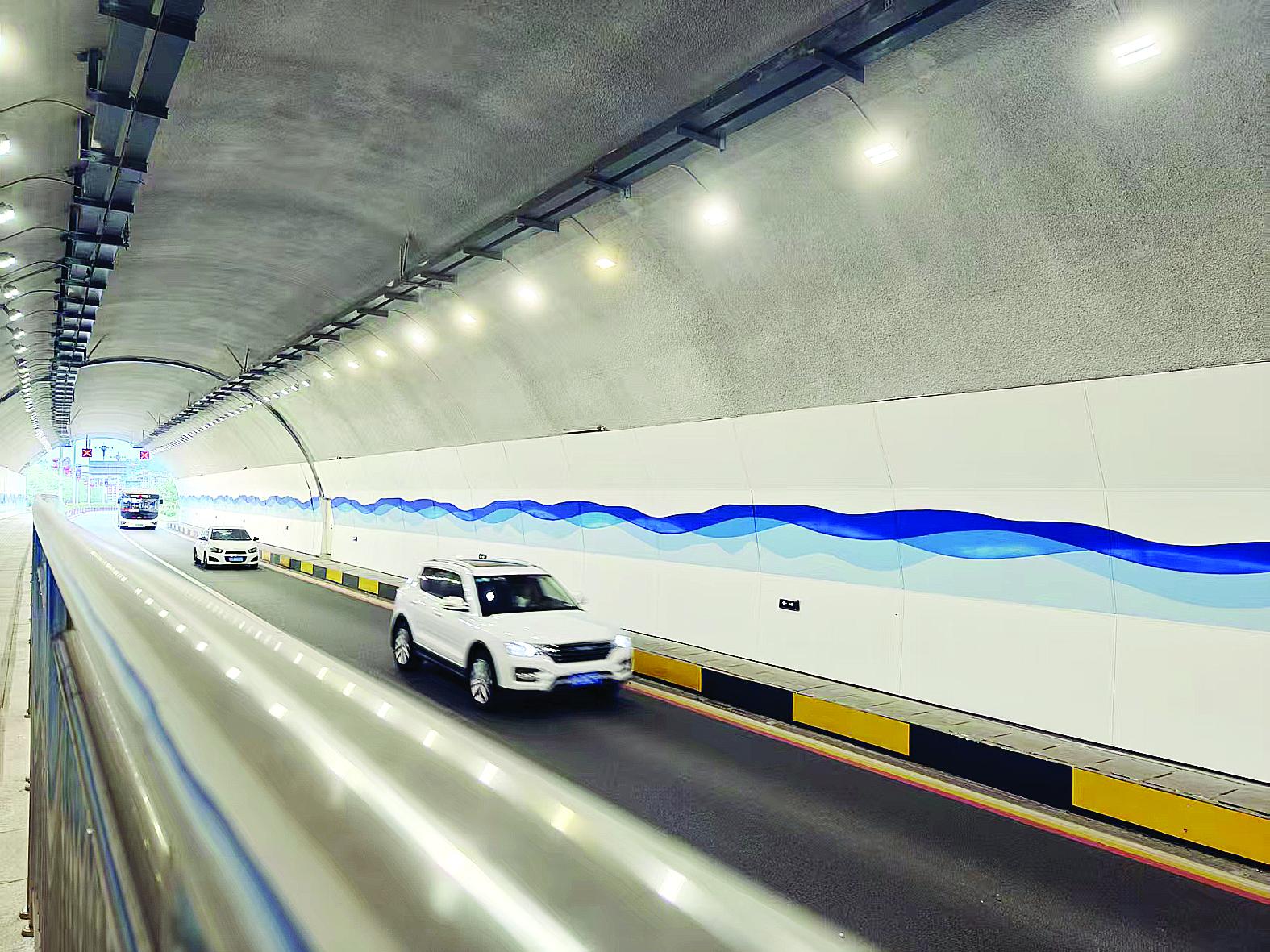 “为确保改造效果,我们在施工过程中严格把控每一个环节。”据施工负责人介绍,此次改造不仅注重安全性能的提升,还充分考虑了驾驶人员的视觉感受,力求打破隧道脏污、昏暗的氛围。隧道洞顶采用了灰色喷涂,整体视觉效果沉稳协调,有效避免了视觉疲劳;隧道两侧墙面精心绘制了宽约1米的蓝色波浪形图案,增添了隧道内部的灵动感,清新的色彩搭配,让隧道瞬间变得明亮通透,也让市民在穿行过程中拥有更愉悦的视觉体验,极大改善了隧道内的通行环境。