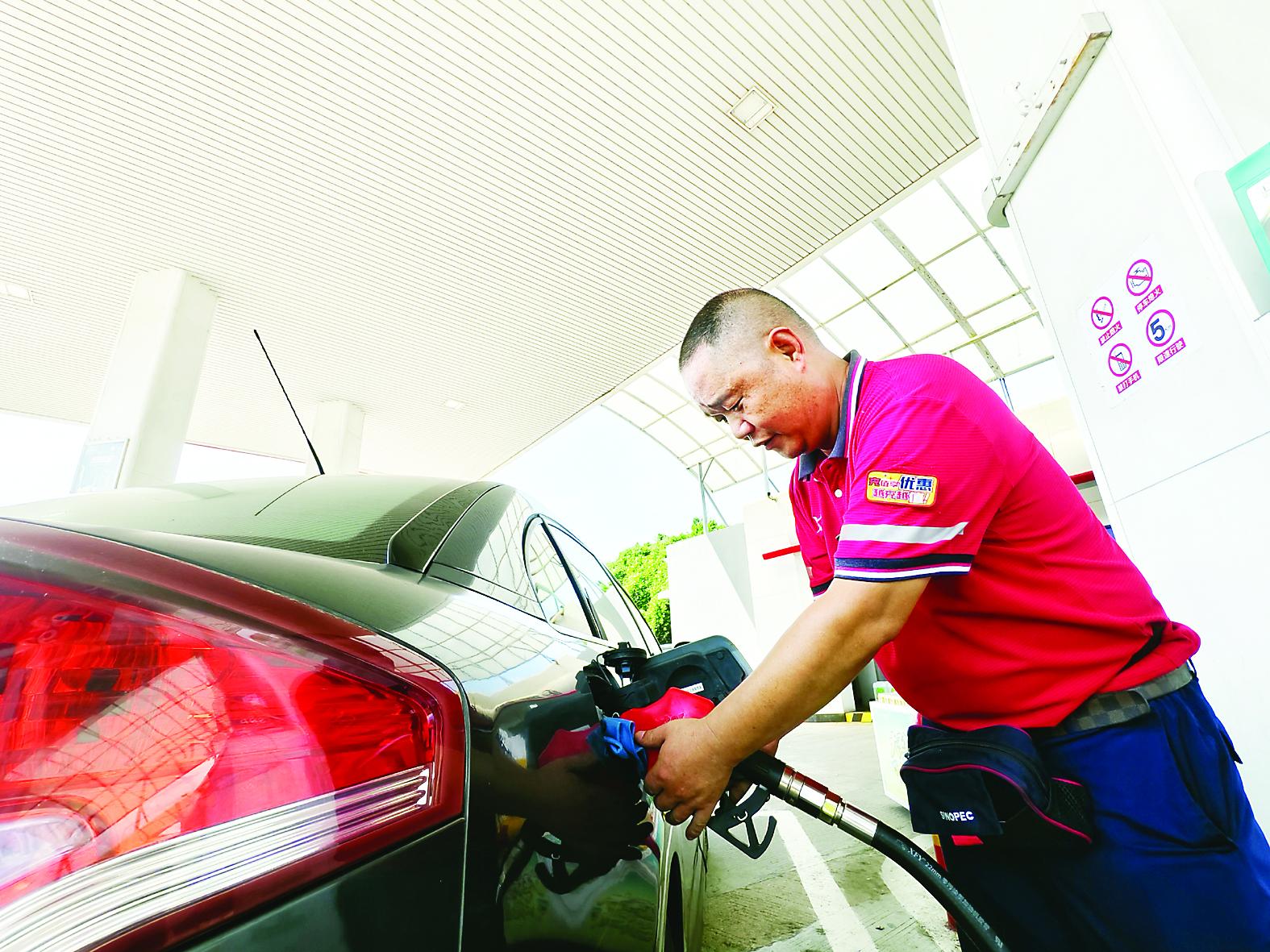 “双节”来临,全市各地迎来旅游、探亲等多重客流叠加高峰,车流量明显增加。为保障车辆出行,各地加油、加气等站点做好充足准备,确保及时为车辆加油补能。图为1日,在延平区一处加油站,工作人员正在给车辆加油。 (郑金富 摄)
