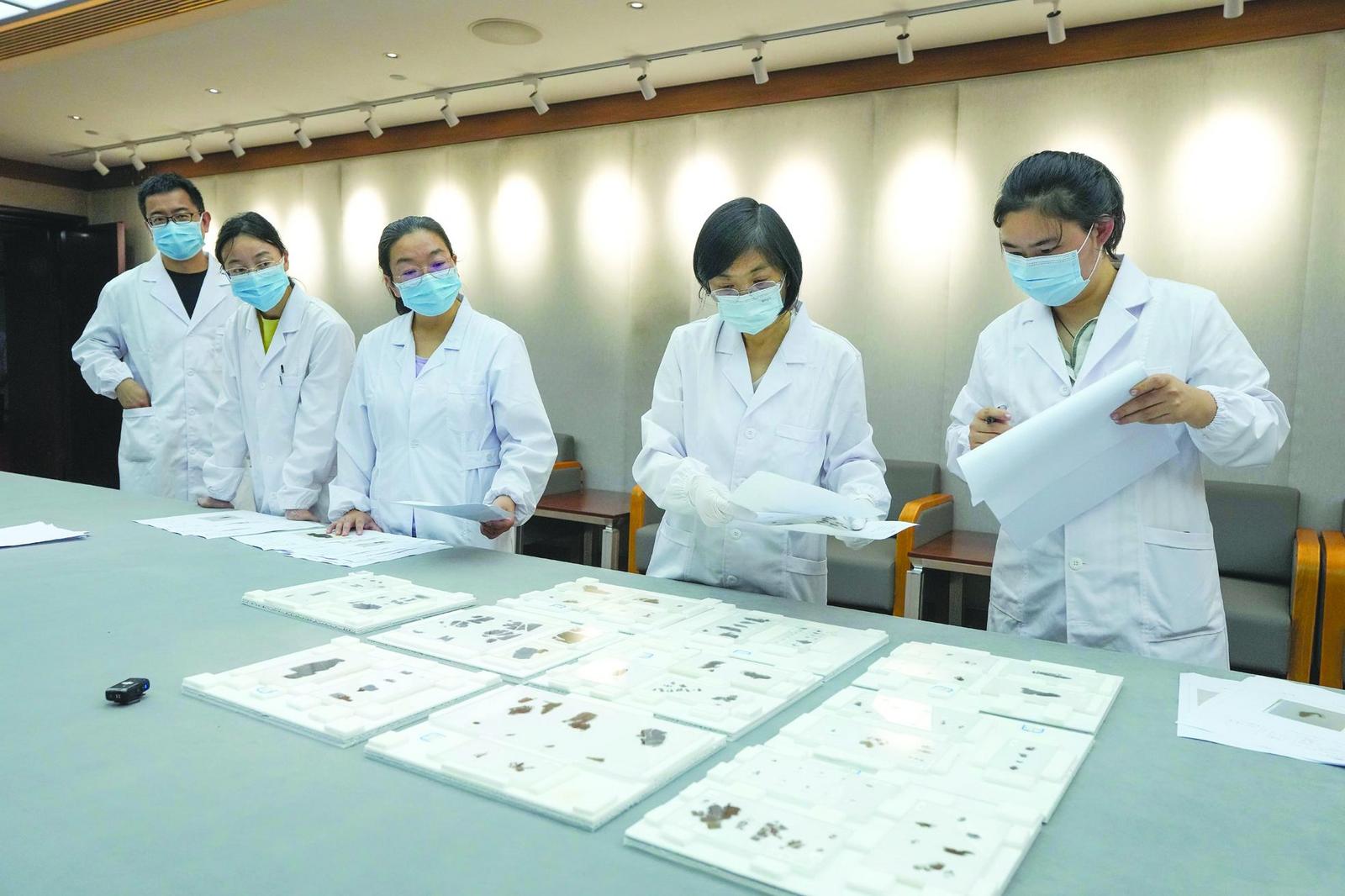9月11日,专家在湖南省博物馆核验长沙子弹库战国帛书。 (新华社记者 薛宇舸 摄)