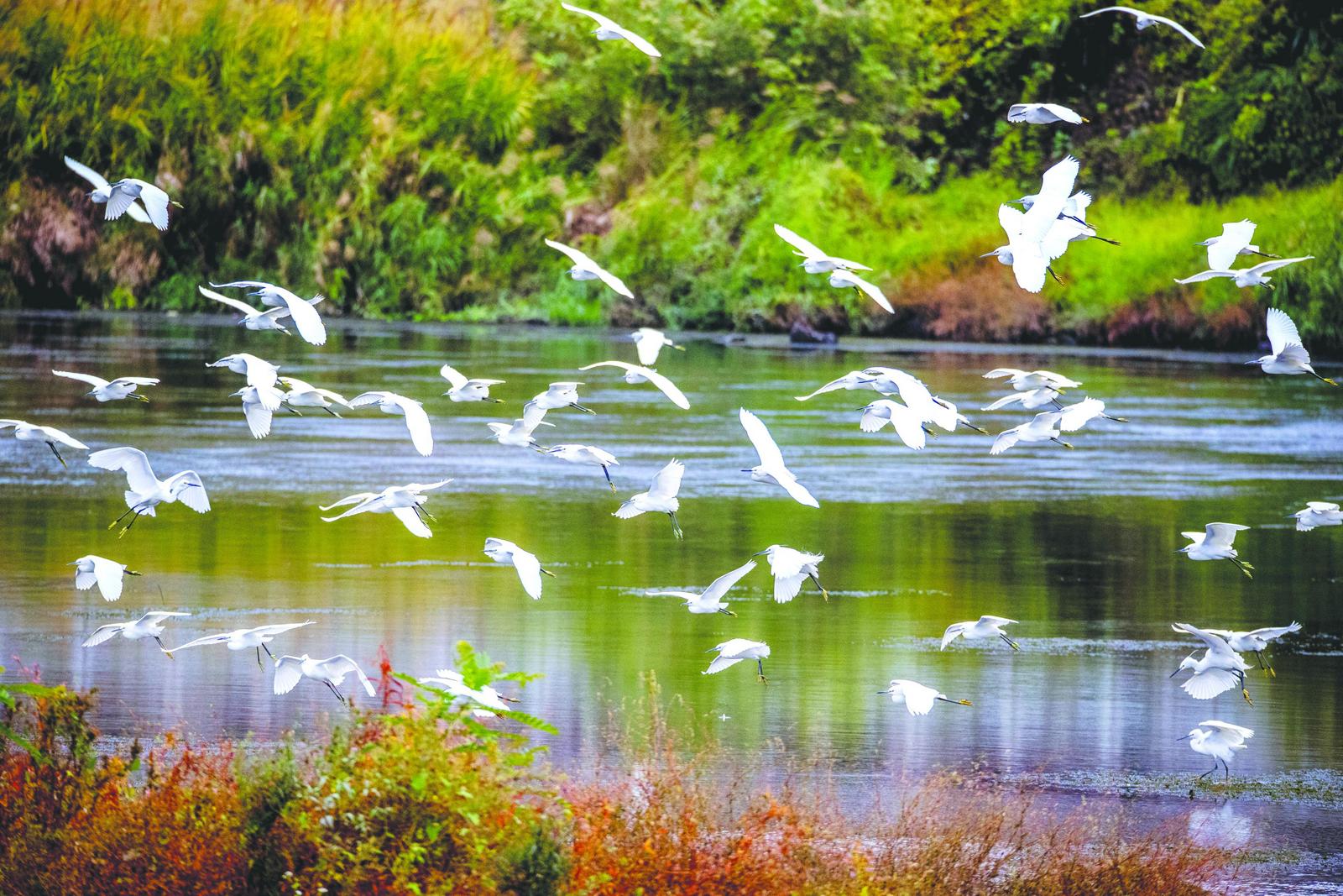 10月22日,松溪县樟树林湿地公园迎来成群白鹭。它们时而翩跹起舞,时而悠然觅食,白色的身影与碧水绿树相映成趣,构成一幅和谐生态画卷。近年来,当地生态环境持续改善,已成为候鸟重要栖息地。