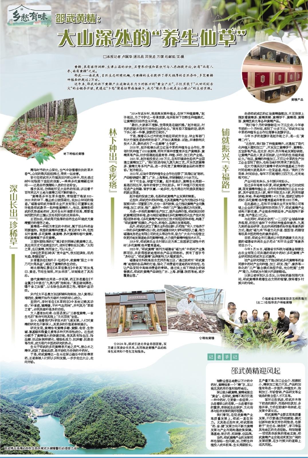从深山密林到大众舌尖,从传统药篓到现代车间,邵武黄精承载着生态文明的智慧,演绎着乡村振兴的传奇。