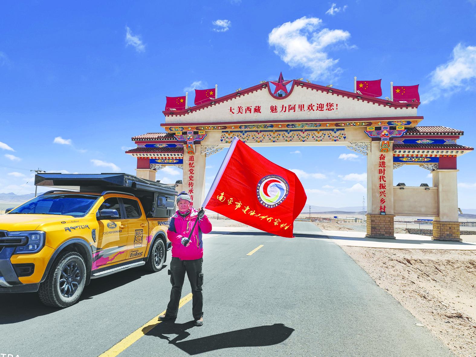 郑惠平与朋友自驾到西藏。图为阿里地区G216国道入口处。 (罗贞洪 摄)