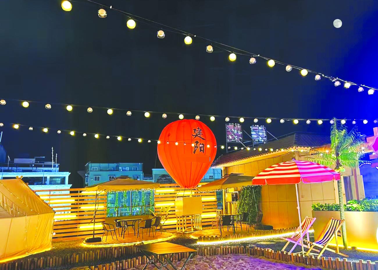 不过,传统的露营地基本都在郊区或者更远的山林,需要奔波的路途、耗费的时间,让不少渴望露营的人望而却步。为迎合消费者对户外空间的渴望,闽北很多餐饮企业也嗅到了其中的商机,纷纷将户外露营与餐饮结合起来。商家们瞄准露营风格的装修,在喧嚣的城区中努力营造“降噪”的治愈环境。特色露营餐厅、烧烤店、小酒馆、小茶馆等不断涌现,那些错落着帐篷、点缀着灯带的精致场地,不仅便于消费者沉浸式感受氛围,更成了市民游客争相打卡的地方,为城市消费注入新活力。