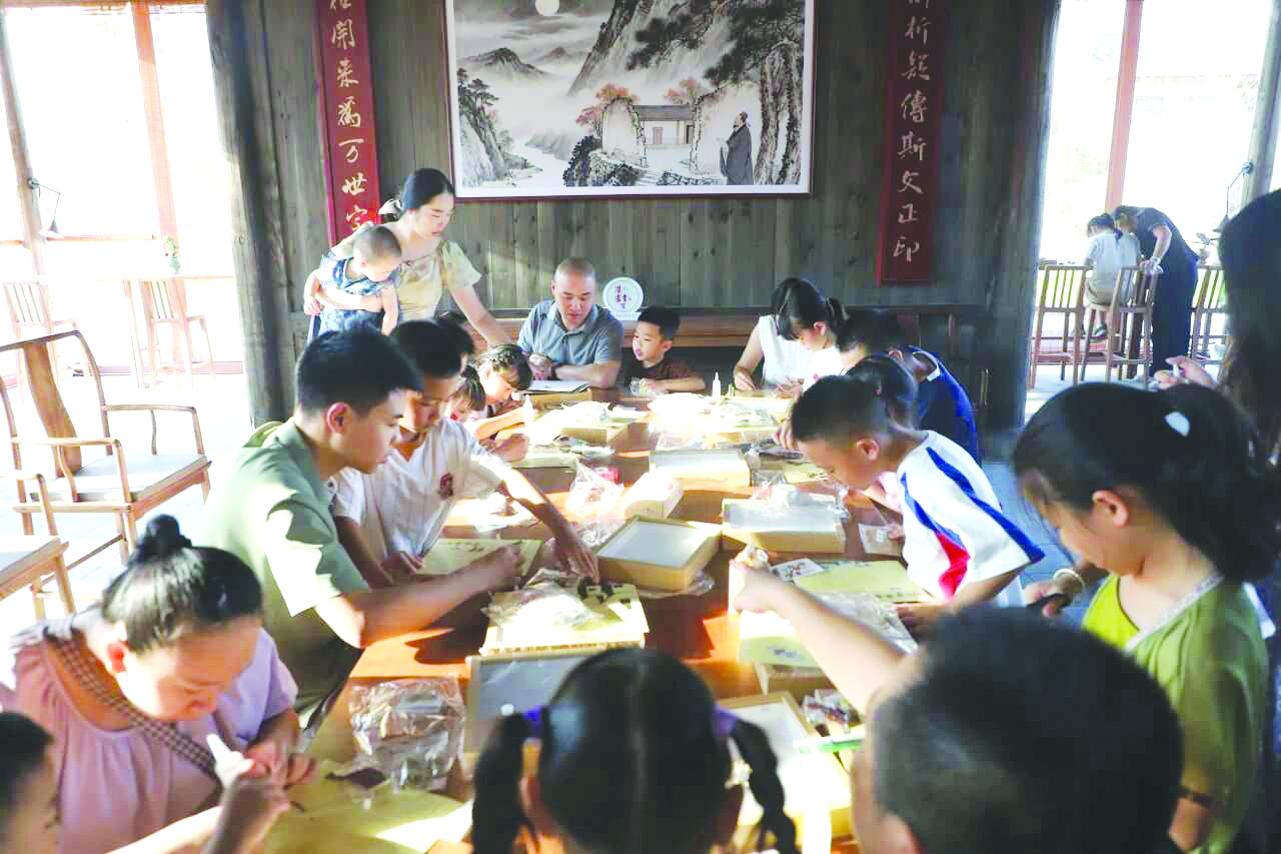 群山脚下,县城核心街区中,新落成的湛卢书院以“沉浸式传统文化体验”成为热门打卡地。漆扇DIY、非遗版画、手工花灯、月饼烘焙等活动轮番上演,游客身着汉服,体验传统技艺魅力,感受那份穿越时空的文化共鸣。“从没在这么雅致的书院体验过非遗,孩子画漆扇时,真像回到了古代学堂。”市民吴先生感慨道。