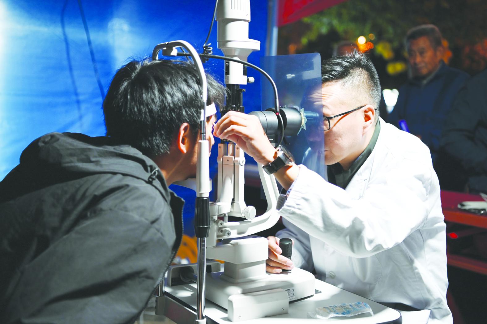 “好舒服,眼睛一下子冰冰凉凉的!”27日晚,在眼视光科摊位前,51岁的林阿姨戴上中药熏蒸眼罩,忍不住赞叹。南平市人民医院眼视光科主任钟文慧正专注地为市民进行眼部调理:“我们这次特别带来了干眼症筛查、视疲劳缓解、青少年近视防控咨询、糖尿病眼底筛查等多项服务。”医护人员还现场演示耳穴埋豆、手法点穴,以及中药熏蒸治疗干眼、缓解视疲劳、延缓近视进展等疗法,让市民亲身感受中医药在护眼明目方面的独特魅力。