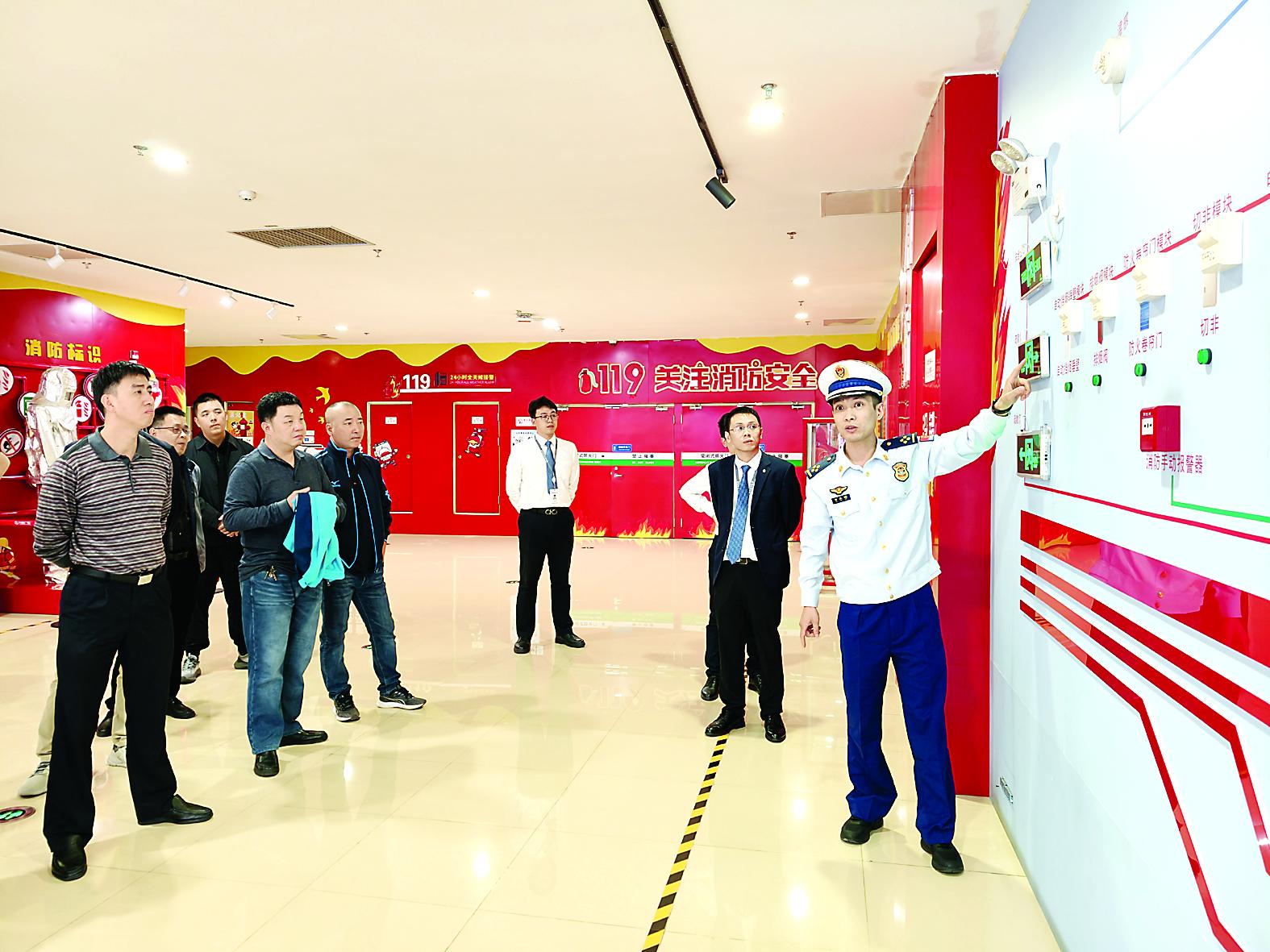 近日,南平市消防救援支队组织成员单位开展消防安全专题培训,通过“理论授课+经验分享+现场实操”的多元化形式,为行业监管人员精准“充电”。图为10月29日,消防监督员在建阳区万达广场为行业部门人员讲解消防器材操作使用方法。 (龚祖雁 冯勇强 摄)