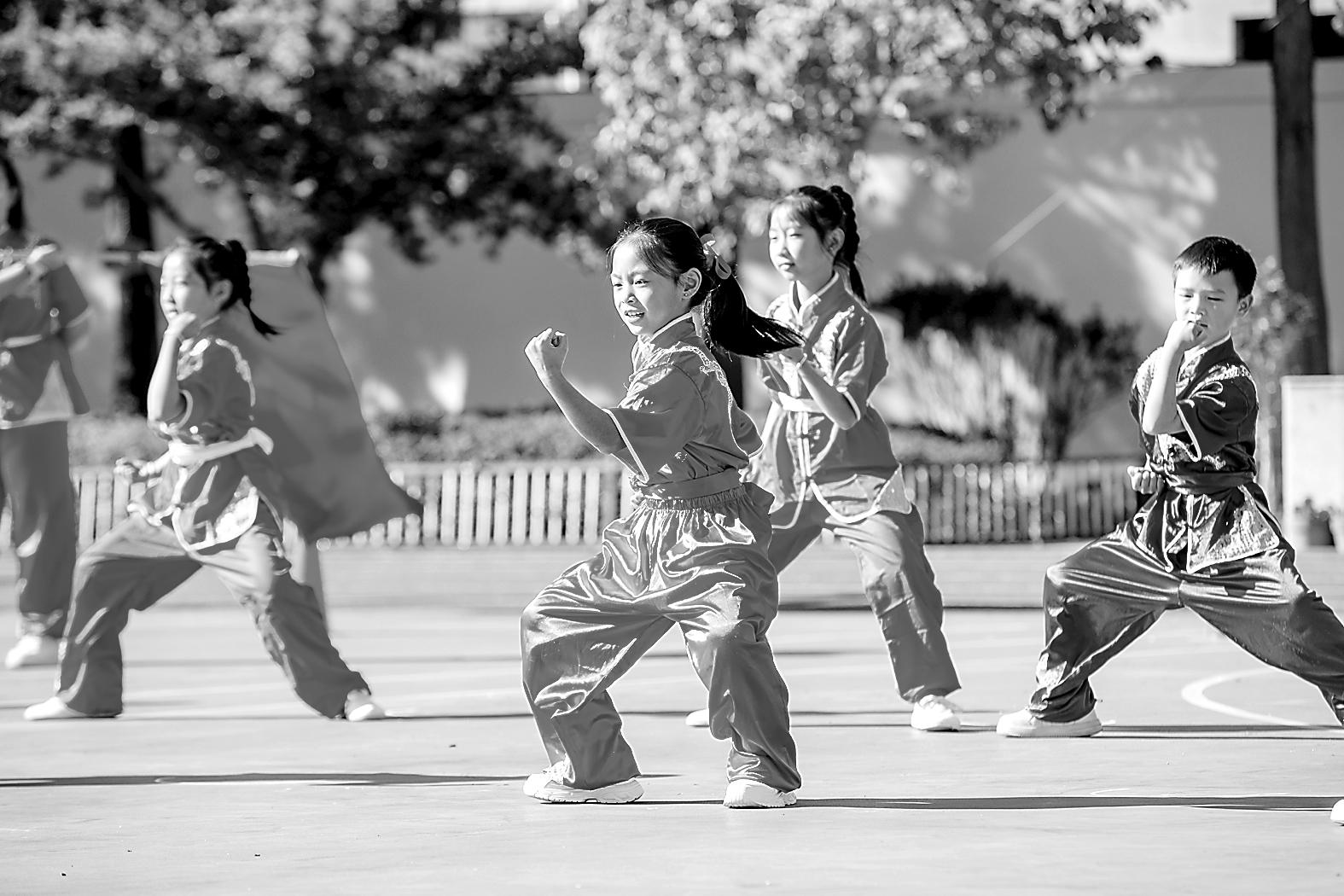 21日,松溪县城关水南小学学生在大课间练习传统武术。该校利用每日大课间时间,开展形式多样、内容丰富的阳光体育活动,将跑操、武术等传统与现代健身项目融入校园日常,为宁静的校园注入了蓬勃的朝气与活力。 (王德锋 摄)