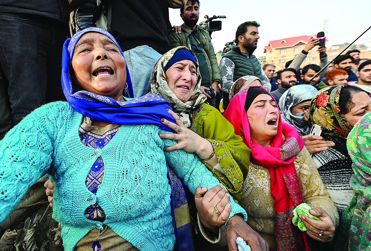 11月15日,在印控克什米尔地区斯利那加,人们哀悼爆炸事件中的遇难者。据印度媒体报道,印控克什米尔地区一警察局14日晚发生爆炸,造成至少9人死亡、29人受伤。 (新华社发 贾韦德·达尔 摄)